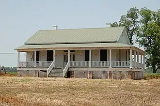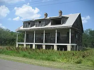 Examples of slave housing can be found on many of the extant plantation complexes. Historically housing for enslaved people on Louisiana plantations (prior to the reconstruction era), featured cabins consisting of two rooms, with one family in each room.[16] After the American Civil War in 1865, the United States of America had abolished slavery, and the architecture changed for laborers on plantations to include more space, one example of this is found at the Allendale Plantation in Port Allen.[16]