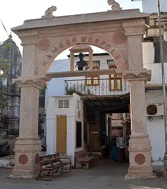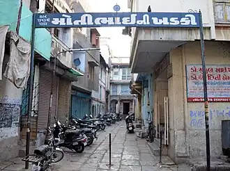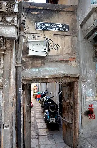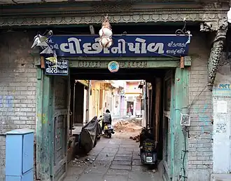 A Pol (pronounced as pole) is a housing cluster which comprises many families of a particular group, linked by caste, profession, or religion.[1][2] This is a list of Pols in the old walled city[1] of Ahmedabad in Gujarat, India. Heritage of these Pols [3] has helped Ahmedabad gain a place in UNESCO's Tentative Lists, in selection criteria II, III and IV.[4] The secretary-general of EuroIndia Centre quoted that if 12000 homes of Ahmedabad are restored they could be very helpful in promoting heritage tourism and its allied businesses.[5] The Art Reverie in Moto Sutharvado is Res Artis center.