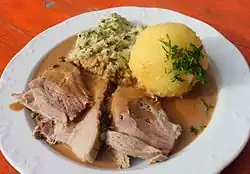 Poland | In Polish: kluski śląskie. Made of boiled and then mashed potatoes (moderately cooled, but still warm), potato flour, an egg (optional) and a dash of salt. |