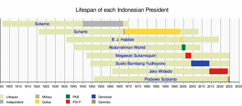 Prabowo SubiantoJoko WidodoSusilo Bambang YudhoyonoMegawati SukarnoputriAbdurrahman WahidB. J. HabibieSuhartoSukarno