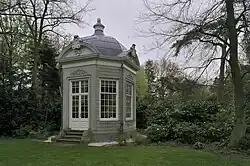 Fraai tuinpaviljoen. Louis XVI Building Castle parts 18th century Kennemerweg bij 32 52°24′25″N 4°37′26″E / 52.40686°N 4.62402°E / 52.40686; 4.62402 (RM9699 - Kennemerweg bij 32) 9699