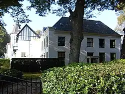 White villa with rectangular corner towers and a double service building Huis House 1871 A. van der Steur Donkerelaan 2 52°24′33″N 4°36′56″E / 52.40923°N 4.61554°E / 52.40923; 4.61554 (RM511140 - Donkerelaan 2) 511140