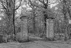 Gemetselde poort, hekpijlers voormalige Duinvliet Tuin/park Garden, park and courtyard 18th century Duinvlietspad bij 4 52°22′35″N 4°36′03″E / 52.37651°N 4.60074°E / 52.37651; 4.60074 (RM9681 - Duinvlietspad bij 4) 9681