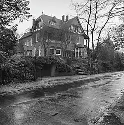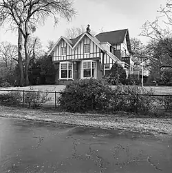Villa, transitional architectural style popular between 1880-1900, very early and rare example of a flat roof Huis House 1902 Rijperweg 14 52°24′06″N 4°36′42″E / 52.40163°N 4.61161°E / 52.40163; 4.61161 (RM511142 - Rijperweg 14) 511142