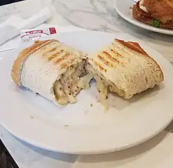 United States | Stromboli is a type of baked turnover filled with various Italian cheeses and usually cured meats or vegetables.[16] |