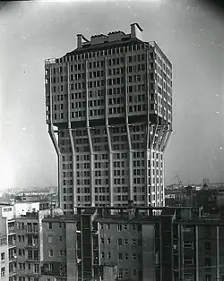 High-rise development continued in the early 1960s, with modernist buildings such as the Torre Servizi Tecnici Comunali being built in 1963[8] and Porta Romana Tower in 1965.[9] Around this time, eight residential high-rises were completed in the southern district of Gratosoglio to address the need for housing, largely using prefabricated blocks. Designed with the intention of being a self-sufficient district”, the towers were built up to a height of 56 m (184 ft), and the district has since become known as a troubled"dormitory district".[10][11]