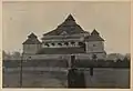 1750–1918 | The large, rectangular main hall measured 10.80 x 8.60 m and was surrounded on three sides by lower rooms: to the west by the vestibule and to the south and north by the prayer rooms for women. The entrance to the vestibule and from there to the main hall on the west side was through a portico with a gable supported by columns. To the north and south of this side there were corner pavilions, which had access to the women's prayer rooms on the ground floor and stairs to the rooms on the first floor. The women's rooms each had three rectangular windows; above each wall there were two pairs of windows that let the light into the main hall. The roof had up to four stories, which consisted of concave, convex and straight slopes. These were separated from each other by cornices of different heights. There was a decorative frieze between the first convex roof and the second concave. The corner pavilions had two-story tent roofs, the roofs of the women's rooms leaned against the side walls. The design of the entire building indicated that the main hall, vestibule, women's rooms and corner pavilions were built at the same time. | ![]()