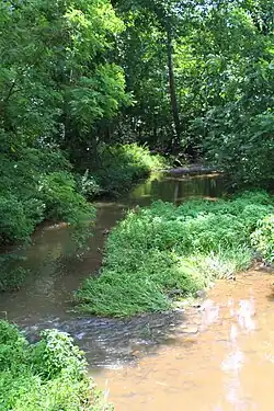 The elevation at the mouth of Lithia Springs Creek is 436 feet (133 m) above sea level.[1] The elevation of the creek's source is between 700 feet (210 m) and 720 feet (220 m) above sea level.[3]