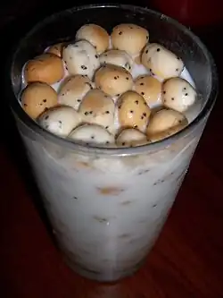 The traditional Lithuanian curd cheese Lietuviškas varškės sūris has been registered as a Protected Geographical Indication (PGI) in the EU and UK.[21] The most popular way of eating Lithuanian non-fermented white cheese is with fresh honey; it can also be cooked with spices and enjoyed with tea. Food historians estimate that the curd cheese was known for 4-6 thousands of years.[22] Lithuanians started fermenting hard cheese around the 16th century in the region of Samogitia. Across Samogitian borders, this cheese was known as Lithuanian cheese. Historically there were not many varieties of cheese in Lithuania, due to low levels of lactose intolerance. Milk products were usually consumed fresh, or slightly fermented. Semi-hard cheese Liliputas in 2015 was registered as an EU Protected Geographical Indication (PGI).[23] Hard cheese Džiugas ripens for at least 12 months, is popular among gourmets and being used as to flavour recipes. Džiugas in 2019 was registered as a Protected Geographical Indication. In the interwar period Šėta was famous for its cheese, which was made in sūrinė (cheese house). Small family farms throughout Lithuania also producing various types of artisan cheeses being sold in eco and farmer markets, restaurants.