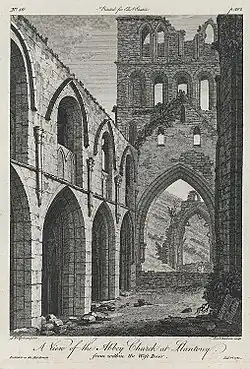 The buildings at Llanthony gradually decayed after the Dissolution to a ruin although, in the early 18th century, the medieval infirmary was converted to the Church of St David.[9] In 1799, the estate was bought by Colonel Sir Mark Wood, the owner of Piercefield House near Chepstow, who converted some of the buildings into a domestic house and shooting box. He then sold the estate in 1807 to the poet Walter Savage Landor.