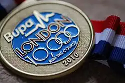 The London 10,000 is an annual road running event over 10 kilometres (6.2 mi) which takes place in late May in London, United Kingdom. Established in 2008, the race goes through the roads of St. James's Park and finishes on the mall by Buckingham Palace.[1] VitalityHealth took over sponsorship in 2016 from the original sponsor Bupa.[2]