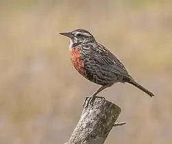 The long-tailed meadowlark (Leistes loyca) is a passerine bird of southern South America and the Falkland Islands, belonging to the meadowlark genus Leistes in the icterid family that looks very similar to the related endangered species, the Pampas meadowlark.