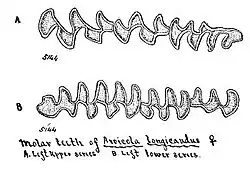The scientific name of the long-tailed vole is Microtus longicaudus. The generic name, Microtus, derives from the Greek words μικρός meaning "small" + οὖς "ear".[4] In Latin, the species name longicaudus derives from longus meaning "long" and cauda meaning "tail".[4] The type specimen was a female collected by Vernon Orlando Bailey in the Black Hills at an altitude around 5,500 ft (1,700 m) near Custer, South Dakota, on July 19, 1887.[5][6] The description was published by C. Hart Merriam in The American Naturalist the following year.[5] The original scientific name was Arvicola longicaudus.[5] Certain features of the molars were noted, which distinguished the long-tailed vole from other voles known at the time.[5] The species was formerly sometimes regarded as a member of the Old World genus Chionomys.[2]