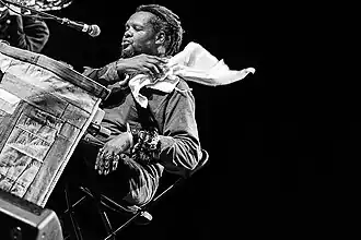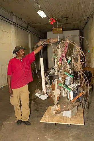 Lonnie Bradley Holley (born February 10, 1950), sometimes known as the Sand Man,[1][2] is an American artist, art educator, and musician. He is best known for his assemblages and immersive environments made of found materials. In 1981, after he brought a few of his sandstone carvings to then-Birmingham Museum of Art director Richard Murray, the latter helped to promote his work. In addition to solo exhibitions at the Birmingham Museum of Art and the Halsey Institute of Contemporary Art at the College of Charleston, Holley has exhibited in group exhibitions with other Black artists from the American South at the Michael C. Carlos Museum and the High Museum of Art in Atlanta, the Studio Museum in Harlem, the Metropolitan Museum of Art, the Philadelphia Museum of Art, the Toledo Museum of Art, Pérez Art Museum Miami, NSU Museum of Art Fort Lauderdale, the Institute of Contemporary Art, Boston, de Young Museum in San Francisco, National Gallery of Art, Washington, D.C., the Ikon Gallery in Birmingham, England, and the Royal Academy of Arts in London, among other places.