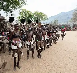 A great ceremony is held when the new generation of monyomiji takes over from the previous ruling age set. This transfer of power happens at regular intervals, ranging from 12 to 22 years depending on the location,[11] unless there are exceptional circumstances.[12]