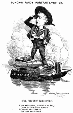 From 1878 until 1881 Beresford was second in command of the royal yacht HMY Osborne. He was captain of the gunboat HMS Condor in 1882 when it took part in the Bombardment of Alexandria during the Egyptian war of 1882 and won admiration amongst the British public for taking his ship inshore to bombard the Egyptian batteries at close range.
