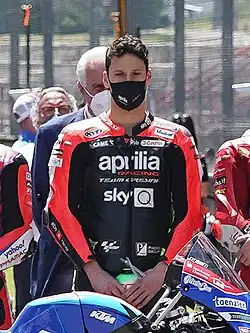 Lorenzo Savadori (born 4 April 1993 in Cesena) is a motorcycle racer from Italy, He was the 2015 FIM Superstock 1000 Cup winner and the Italia 2020 CIV Superbike Champion, acting as test rider for Aprilia with occasional wild card race entries.[1] For the 2021 season, he competed in the MotoGP class of racing for Aprilia Racing as team-mate to Aleix Espargaró.