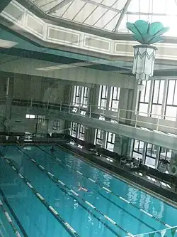 The club provided a venue for gymnastics, athletic training, and team sports, including organization of a civic football team which played the inaugural intercity match with San Francisco in January 1892.[4] During its first two decades of existence the club also established an outdoors athletic park, which included a running track and path for bicycling, a baseball diamond, tennis courts, and facilities for croquet.[5] It also provided rooms designed for socialization, including an expansive reading room,[5] as well as designated areas for billiards and cards.[6]