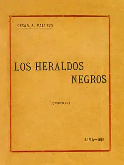Los heraldos negros is the title of a collection of poems written by the Peruvian poet César Vallejo between the years 1915 and 1918 and published in July 1919. It was the first book of Vallejo's to be published.[1] Los heraldos negros is also the name of the first poem in the collection.