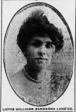 Lottie Williams was born with the name Charlotte Louise Johnson in Chicago in 1866.[2] She was the daughter of Lewis Henry Johnson and Emily Junior,[2] and was educated in the city of her birth.[1] Her first marriage to a Chicago businessman named Mr. Thompson ended upon his death,[3] and soon after this event she moved from Chicago to New York City.[4]