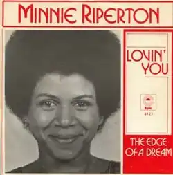 "Lovin' You" is a song recorded by American singer Minnie Riperton from her second studio album, Perfect Angel (1974). It was written by Riperton and her husband, Richard Rudolph, produced by Rudolph and Stevie Wonder, and released as the album's third single on November 29, 1974. The song peaked at number one on the US Billboard Hot 100 on April 5, 1975. Additionally, it reached number two on the UK Singles chart, and number three on the Billboard R&B chart. In the US, it ranked number 13 on the Billboard Year-End Hot 100 singles of 1975.
