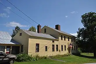 The Andrews House stands close to the east side of South Bridgton Road (Maine State Route 107) in a rural area of southern Bridgton. The house is a rambling connected series of wood-frame structures, with the main house block at the southern end, and ells extending along the road to the north and behind the house to the east. The main block is a 2+12-story structure, five bays wide, with a side gable roof, central chimney, clapboard siding, and a stone foundation. Decorative elements are minimal, with the central entrance framed by pilasters and a fanlight, with a dentillated cornice above. A shed-roof porch extends across the southern facade, supported by fluted Doric columns. A 1+12-story four-bay addition, its front flush with that of the main block, extends north, with another section extending further north to join the house to a carriage barn. On the east side a series of two ells join the house to a livestock barn.[2]