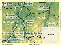 Location of Lubań Śląski–Leśna railway in relation to the nearby railway network