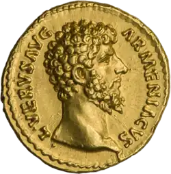 Aureus of Lucius marked: L. VERVS AVG. ARMENIACVS