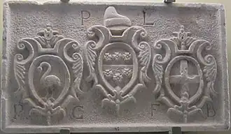One of the important members of the family in the 15th century was Pietro Loredan (1372–1438), who was three times Captain General of the Sea;[30] in 1416 he conquered several Dalmatian strongholds and later defeated the Ottomans at Gallipoli, capturing fifteen galleys; in 1431 he defeated the Genoese and Milanese in Rapallo, achieving the capture of eight galleys and General Francesco Spinola. Pietro died in 1439.[31] He was buried in the Monastery of St. Helena, and the funeral inscription explicitly indicates poisoning as the cause of his death.[32] Many historians identify the principal to be his long-time rival, Doge Francesco Foscari, whose enmity with the deceased Pietro was well-known.[33] In the popular imagination, the names of the Foscari and Loredan remain linked to a sort of generational feud, partly documented, partly due to certain historiographic forcing; and yet it is undeniable how, in the crucial moments that marked the life of Francesco and his son Jacopo Foscari, a Loredan was always present.[34]