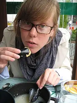 ![]() Knisley eating mussels in Paris in 2009 | |