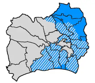 In Lumajang Regency, the linguistic conditions are almost similar to those in Pasuruan Regency, where East Javanese is predominantly spoken, but there is a significant Madurese speaking areas, mainly in the eastern part.[4] The main Lumajang Madurese speaking area is usually homogeneous, or almost entirely inhabited by Madurese people. Meanwhile, the bilingual region between Java and Madura is heterogeneous. Some residents speak Javanese, while a smaller portion speaks Madurese. On the other hand, the residents has bilingual abilities, in this case, Madurese speakers tend to have them. Another characteristic is that there is a wide variety of lexical variations, especially in the form of lexical borrowings from other languages. Just like Pasuruan Madurese, in Lumajang Madurese, examples of lexical variations are usually similar, found in the gloss 'to give birth' in speakers Madurese contains the lexical alaɛr. Although Madurese speakers in transition area (the boundary of use of West Madurese and East Madurese) have the lexical arɛmbiʔ for 'to give birth', the more frequently used form is alaɛr, because this form is considered higher (polite) than the arɛmbiʔ form. Meanwhile, an example of lexical variation among Javanese speakers is the lexical pɔh 'mango', which is an adopted form of *pahuq₁ from Proto-Malayo-Polynesian language, which was also absorbed into Madurese with the lexical paɔh 'mango'.[4]