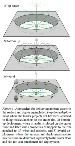 - ^ "A Concept for the Deployment of a Large Lunar Crater Radio Telescope Using Teams of Tethered Robots". JPL Open Repository. 8 Feb 2022.