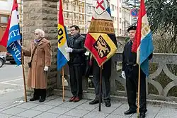 For the organised Resistance, the prime motivating factor appears to have been not a desire for liberty or a democratic ideal, but nationalism, albeit influenced by socialism for those on the left, or by anti-parliamentary corporatism on the right.[6] If there was one characteristic which was common to all Resistance movements, then, whether on the left or the right, it was this nationalism. This becomes apparent in the Resistance organisations' interpretation of history: an emphasis on the "Luxembourgish" emperors of the Holy Roman Empire, a glorification of John the Blind and the participants in the peasant war known as the Kleppelkrich, attacks on the "foreign domination" from 1443 to 1839.[9]