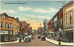 Regardless of the industrial setbacks, the region continued to grow economically. In 1906, construction began on a new county courthouse in Wilkes-Barre.[30] Twenty years later (in 1926), Nanticoke, with a population of just over 22,000, was incorporated as a city.[31] It was the last city established in the county. By 1930, the county's population peaked at 445,109. It was obvious that industry was the driving force behind the expanding population. From the 1930s to the 1980s, Pittston City emerged as a national center for clothing manufacturing. Thousands of workers, mainly women, labored in many factories throughout the Greater Pittston area. Most were members of the International Ladies' Garment Workers' Union (ILGWU). It advocated for higher wages, improvements in workplace health and safety, and employee rights. The ILGWU was active in civic and political life throughout Pennsylvania.[32]