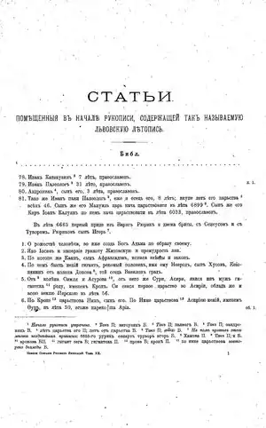 - ^ a b c d e f g h i j Iakov Lur'e, Летопись Львовская Lvov Chronicle (16th century) at the Internet Archive // Словарь книжников и книжности Древней Руси (Dictionary of scribes and bookishness of Ancient Rus) : [в 4 вып.] / Russian Academy of Sciences, Pushkin House; Revised edition by Dmitry Likhachev [et al.]. Leningrad: Nauka, 1987—2017. Vol. 2 : The second half of the 14th-16th century, chapter 2 : L-Ya / ed. D. M. Bulanin, G. M. Prokhorov. 1989.
