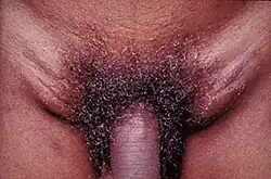 Genital elephantiasis or esthiomene, which is the dramatic end-result of lymphatic obstruction, which may occur because of the strictures themselves, or fistulas. This is usually seen in females, may ulcerate and often occurs 1 to 20 years after primary infection. Fistulas of, but not limited to, the penis, urethra, vagina, uterus, or rectum. Also, surrounding edema often occurs. Rectal or other strictures and scarring. Systemic spread may occur, possible results are arthritis, pneumonitis, hepatitis, or perihepatitis.[16]