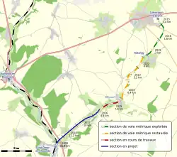 Since 2013, a project is under way to transfer the museum to Crèvecœur-le-Grand, called the "Train à Vapeur du Beauvaisis", which is now the association's main activity center. The new line, built on an abandoned SNCF right of way, operates since 2019 between the main station at Crèvecœur-le-Grand and a small halt of Rotangy, a distance of 3.5 km (2.2 mi). The line is to be extended further in the next years, first reaching the station at Oudeuil, and then lastly the town of Saint-Omer-en-Chaussée, for a total length of 11.9 km (7.4 mi).