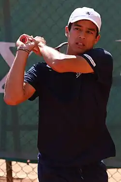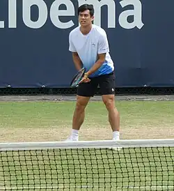 At Wimbledon, he reached his first Grand Slam third-round by winning his first-ever 5-set match over Nicolás Jarry in the round of 64.[14] He then proceeded to defeat Guido Pella in straight sets to reach the second week of a grand slam for the first time in his career.[15][16] He was then defeated in four sets by Milos Raonic in the round of 16.[17]