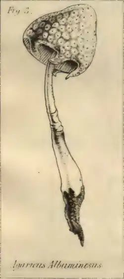 1847 This species was first described by Miles Joseph Berkeley using the specimen collection from Ceylon (now Sri Lanka). He named this species Agaricus albuminosus.[2]