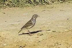 The Madagascar lark was formerly placed within the genus Mirafra until moved to Eremopterix in 2014.[2] Alternate names for the Madagascan lark include: Hova lark, Madagascan bush lark, Madagascar singing bushlark, and Madagascar sparrow lark.[3]