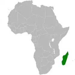 The range of the Madagascan lark is large, with an estimated global extent of occurrence of greater than 100,000  km2.[1] Its natural habitats are dry savannah and subtropical or tropical dry shrubland.