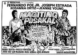 Magiting at Pusakal is a 1972 Filipino action film starring Fernando Poe Jr. and Joseph Estrada. Directed by Augusto Buenaventura and co-written by Buenaventura and Ruben Rustia, the film is about Leon and Joe, two fugitives of contrasting personalities who try to avoid capture during the Japanese occupation of the Philippines. Produced by Joseph Estrada Productions, the film was released in the Philippines on April 15, 1972, and was later given a re-release in 1988.