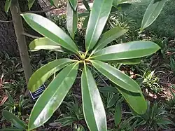 Magnolia fordiana is a widespread species of flowering plant in the family Magnoliaceae, native to southern China, Hainan, and Vietnam.[2] An evergreen tree reaching 25 m (82 ft) tall, it is found in hilly forests, often beside rivers, at elevations from 300 to 1,200 m (1,000 to 3,900 ft).[3] Specialists in Magnolia believe that most Magnolia fordiana specimens offered for sale are actually the closely related Magnolia yuyuanensis, a more attractive tree and one that is better adapted to cultivation.[4] It is widely used as a street tree in southern Chinese cities.[5]