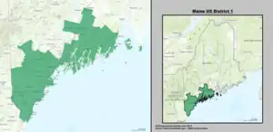 Maine's 1st congressional district is a congressional district in the U.S. state of Maine. The geographically smaller of the state's two congressional districts, the district covers the southern coastal area of the state. The district consists of all of Cumberland, Knox, Lincoln, Sagadahoc, and York counties, and most of Kennebec County. Located within the district are the cities of Portland, Brunswick, and Saco. The district is currently represented by Democrat Chellie Pingree.