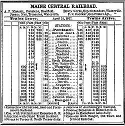 - ^ "Excerpt from an article in the Portland (ME) Weekly Advertiser of January 28, 1870, relating to the Report of the Maine Railroad Commission for 1869". CPRR.org. Retrieved July 13, 2007.