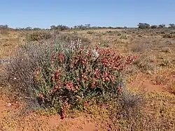 Maireana atkinsiana, commonly known as bronze bluebush,[2] is a species of flowering plant in the family Chenopodiaceae and is endemic to Western Australia. It is a rigid, brittle, dioecious shrub with fleshy, narrowly to broadly egg-shaped leaves with the narrower end towards the base, pairs of male and female flowers, and a pink to red, thin-walled fruiting perianth.