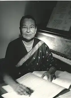 Hajary developed as a composer of world music with Indian influences and was sometimes called the "Hindu pianist."[5] She started transcribing ragas and then went on to write them herself. Examples are New Sound From India (1967), Requiem pour Mahatma Gandhi (1968) and Chants du Gita Govinda (1974). In the 1960s she composed Da Pinawiki, an oratorio about the Passion of Christ. The text was based on her grandmother's Surinamese Bible and the oratorio was opened in Easter week from 1974 performed in several large churches of Paramaribo.[6][7]