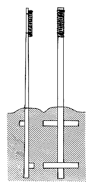 Historically, the most common type consists of a single 7-to-8-foot-long (2.1 to 2.4 m) post driven into the ground, so that it is approximately shoulder height. The post is tapered from the bottom to a thickness of 1 cm at the top. Traditionally, a pad of rice straw (巻 maki "roll" + 藁 wara "straw") was bound to the top with rope to form a striking surface.