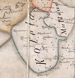 ![]() Detail of Malerkotla State from a map of British and native states in the Cis-Sutlej Division between 1847–51, by Abdos Sobhan, 1858 | |||||||||