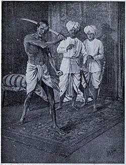 According to an account cited by the 16th-century chronicler Firishta, Kafur had sent some paiks to blind Mubarak Shah, but the captive prince gave them his jeweled necklace and convinced them to kill Kafur instead.[52] Another legend attributes Kafur's death to his mother's prayers to the mystic Shaikhzada Jam. These accounts are latter-day fabrications. According to Barani's near-contemporary account, the paiks decided to kill Kafur on their own initiative.[53]